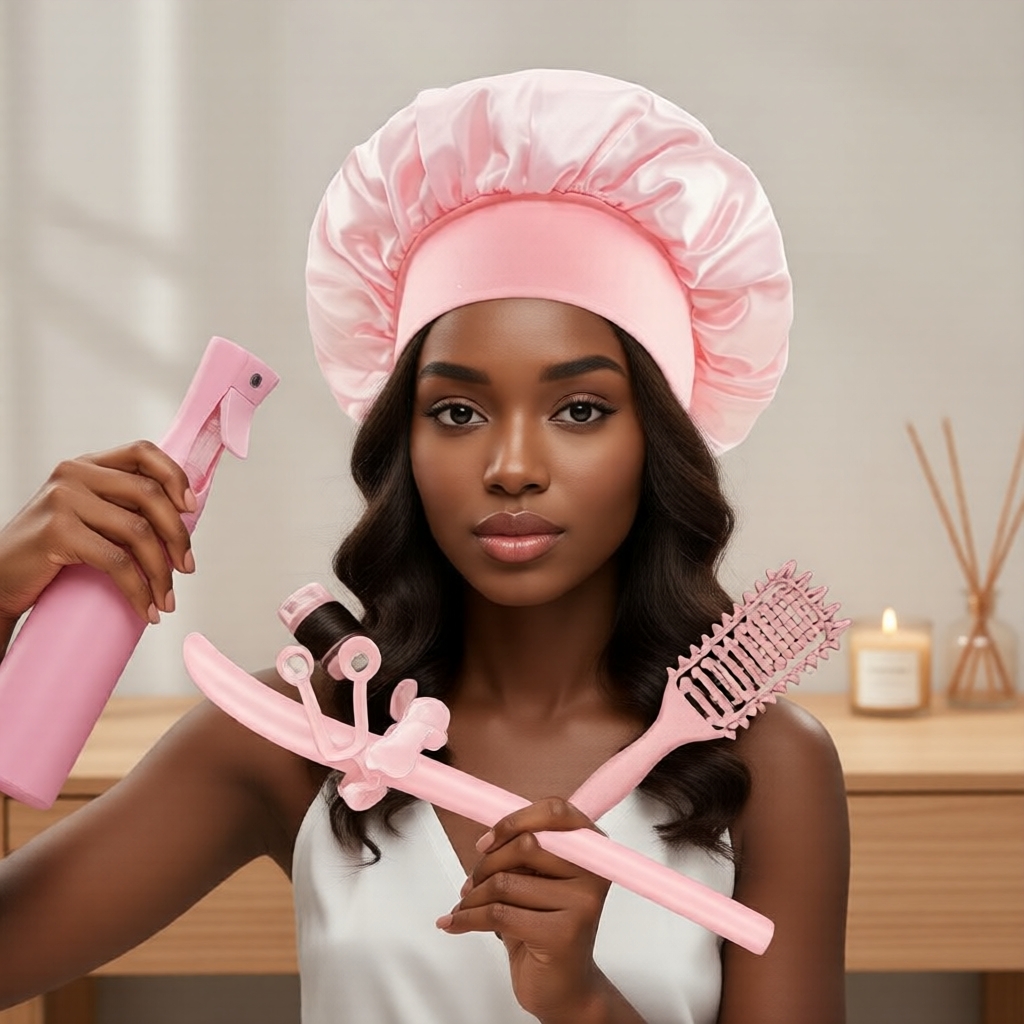 Kit Noturno 7 Peças com Touca de Cetim – Proteção Capilar Durante o Sono, Modelagem DIY, Ótimo Presente para Meninas