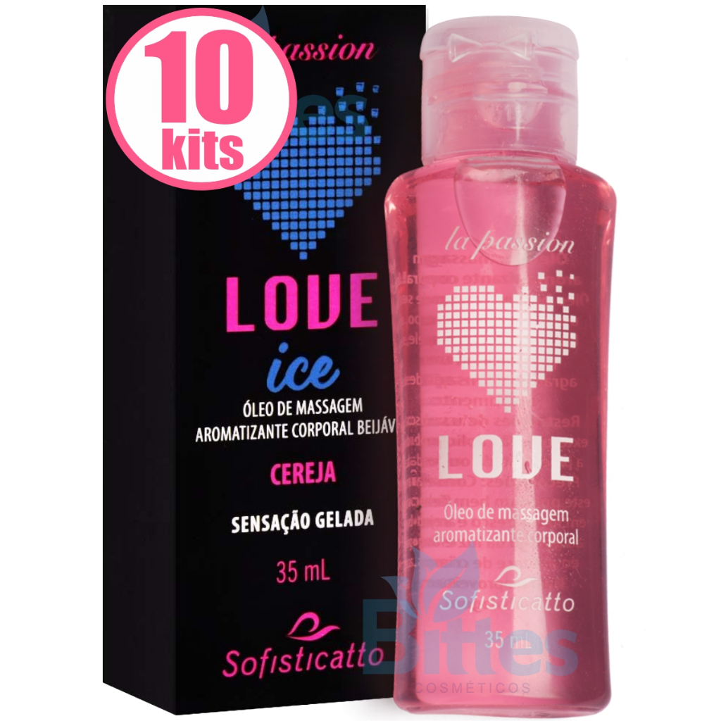 KIT 10 ÓLEO PARA MASSAGEM CEREJA SOFISTICATTO COSMÉTICOS LOVE ICE