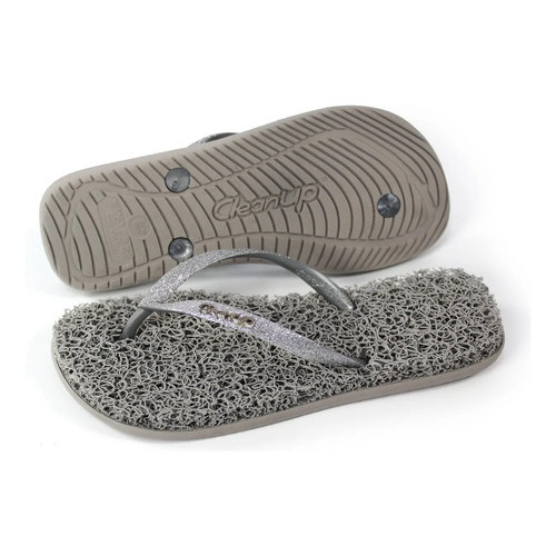 Chinelo Flat Shine Cleanup Sustentável Feminino Prata Prata 35 Br