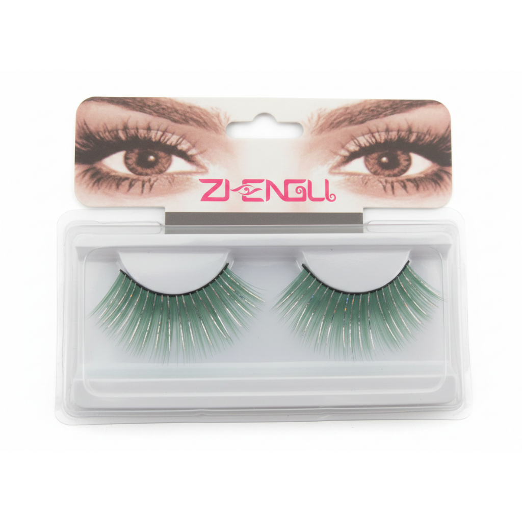 Cílios Postiços Brilhantes Para Maquiagem De Carnaval Verde