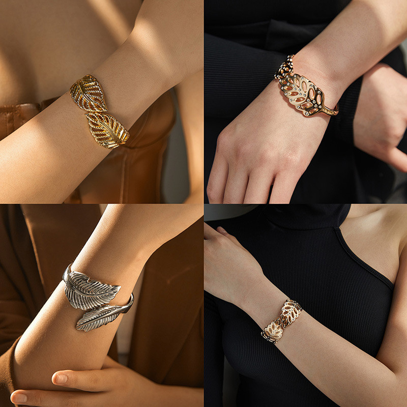 Pulseira de Folha Estilo Designer, Joia de Punho Única para Mulheres
