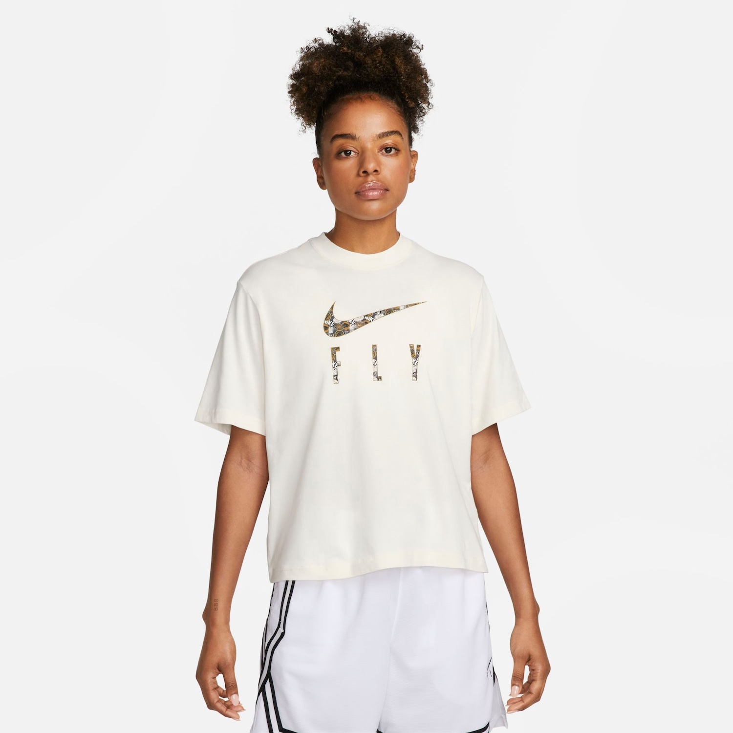 Tecido macio, que absorve o suor e um caimento solto permitem que você voe durante o dia com confiança nesta camiseta gráfica.BenefíciosTecnologia Nike Dri-FIT absorve o suor da sua pele para evaporação mais rápida, ajudando a manter você seco e confortável.Os ombros ligeiramente caídos e o caimento solto proporcionam uma sensação confortável e confiante.Detalhes do ProdutoEstampas impressas57% algodão e 43% poliésterLavável à máquinaImportado