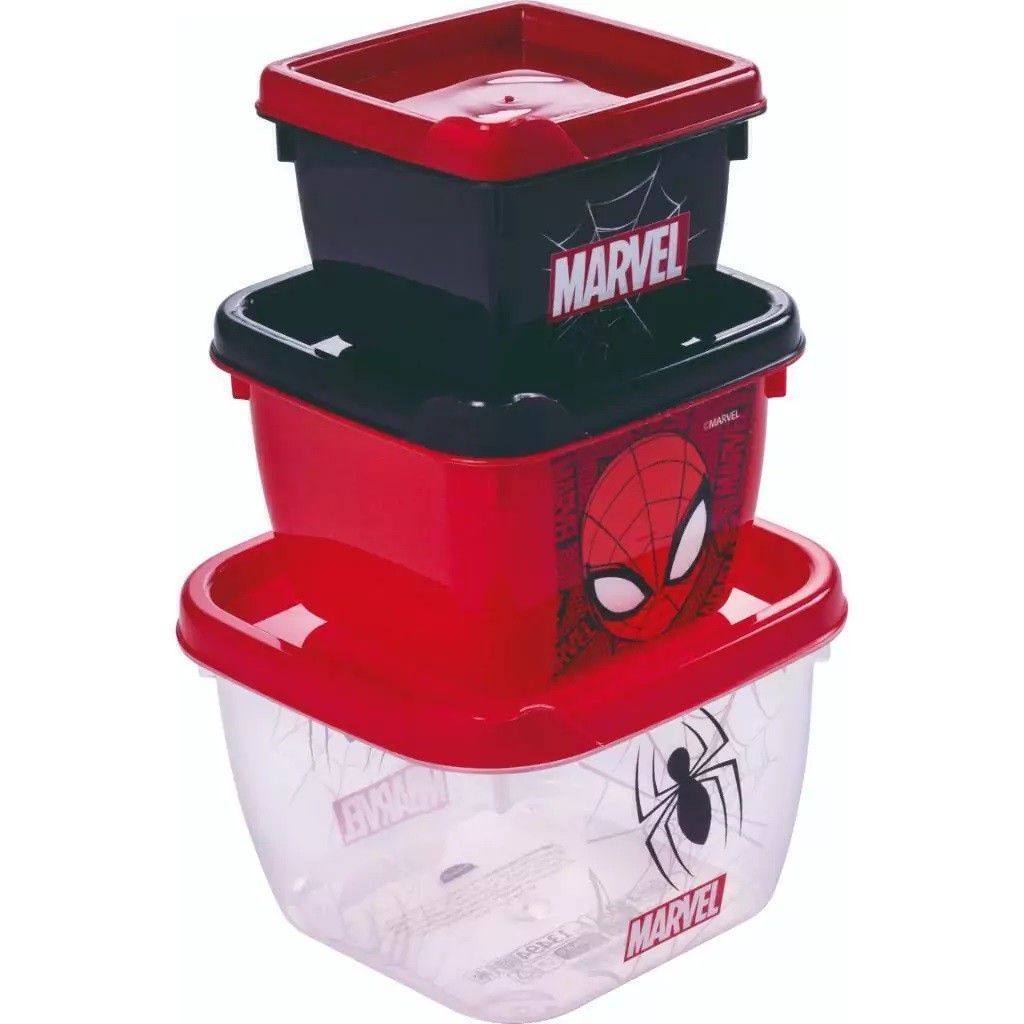 Kit 03 Potinhos com Tampa Infantil Homem-Aranha - Plasútil