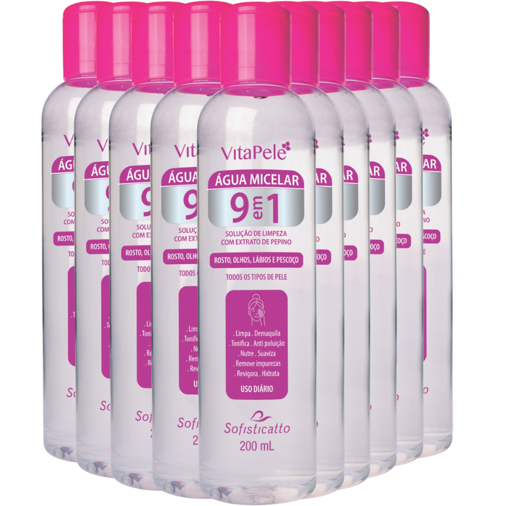 KIT 10 ÁGUA MICELAR VITA PELE SOFISTICATTO COSMÉTICOS 9 EM 1 PARA TODOS OS TIPOS DE PELE