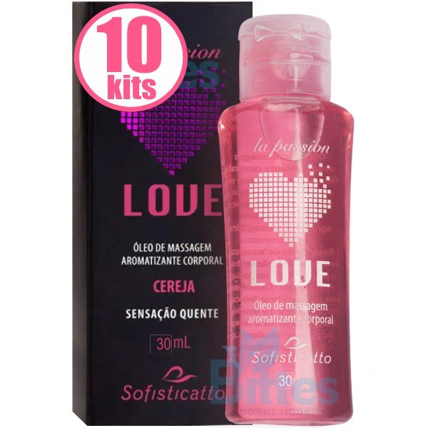 KIT 10 ÓLEO PARA MASSAGEM CEREJA SOFISTICATTO COSMÉTICOS LOVE SEXSHOP 30 ML