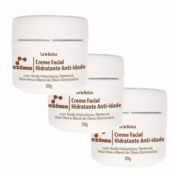 Kit 3 Creme Facial Ozônio Anti-idade Antissinais Antirrugas Dia e Noite Com Acido Hialurônico Lucys