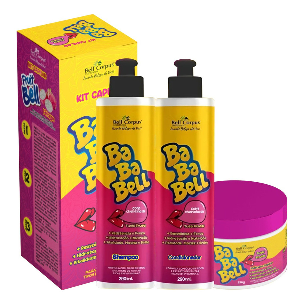 Kit Bababell Tutti Frutti Bell Corpus Cosméticos 3 EM 1 HIDRATAÇÃO CAPILAR FIOS PERFUMADOS