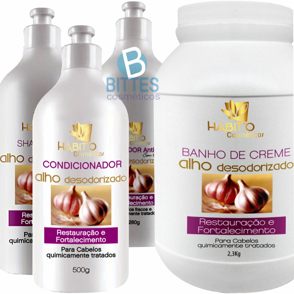 KIT CAPILAR ALHO DESODORIZADO HÁBITO COSMÉTICOS HIDRATAÇÃO TOTAL DOS FIOS