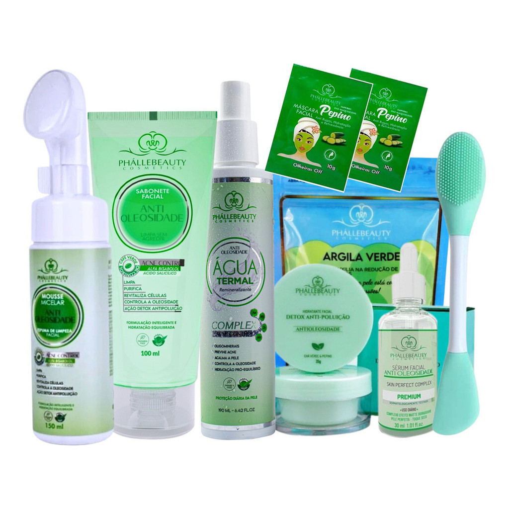 Kit Cuidado Pele Oleosa Mista Skincare Completo Phallebeauty 9 ITENS CUIDADOS FACIAS ANTIOLEOSIDADE