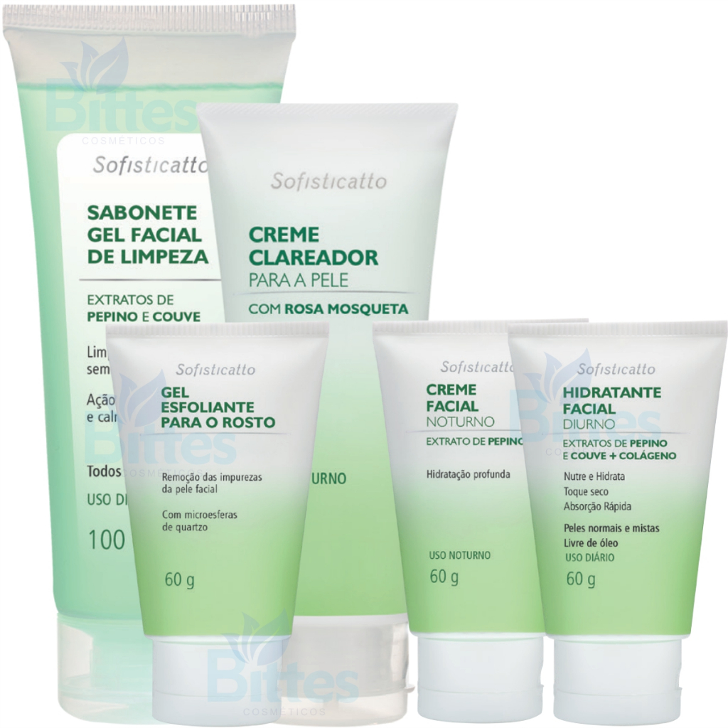 KIT FACIAL PEPINO E COUVE SOFISTICATTO COSMÉTICOS SKINCARE USO DIÁRIO