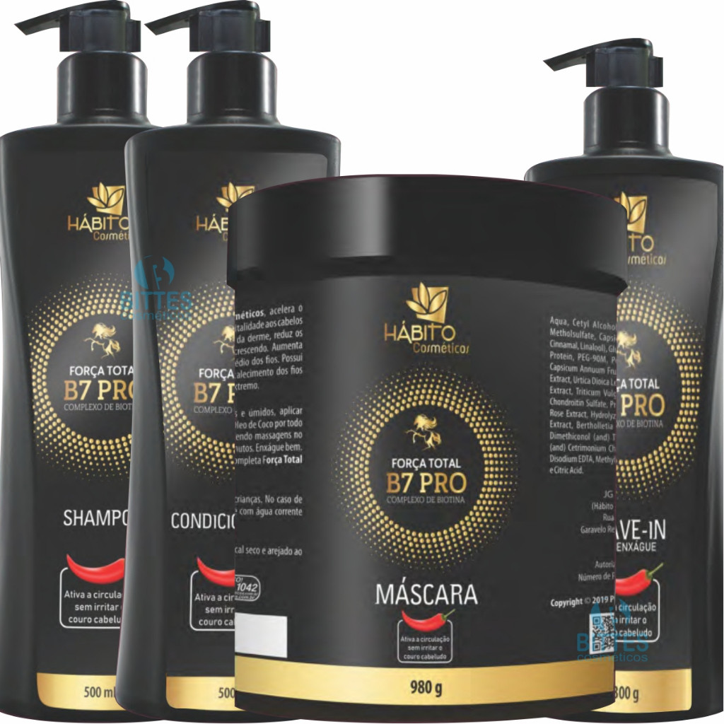 KIT FORÇA TOTAL HÁBITO COSMÉTICOS B7 PRO CRESCIMENTO E FORTALECIMENTO DOS FIOS
