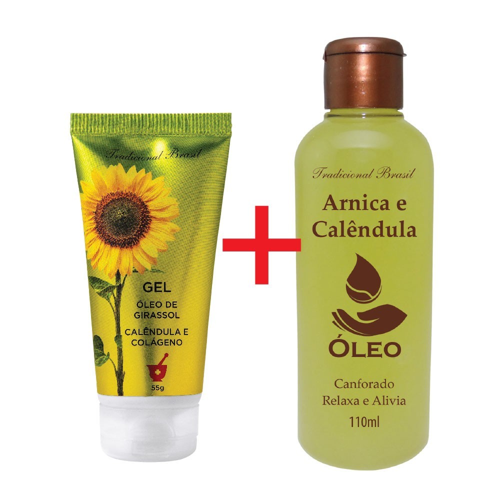 Kit Gel Cicatrizante Com Óleo Girassol E Óleo de Massagem Corporal Para Dores Com Canfora e Arnica