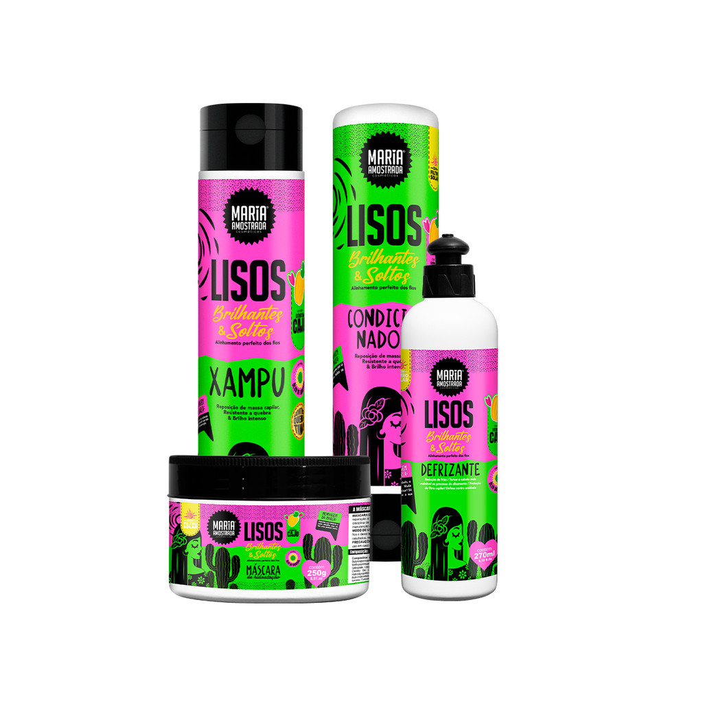 KIT HIDRATANTE LISOS MARIA AMOSTRADA - SHAMPOO CONDICIONADOR MÁSCARA DEFRIZANTE