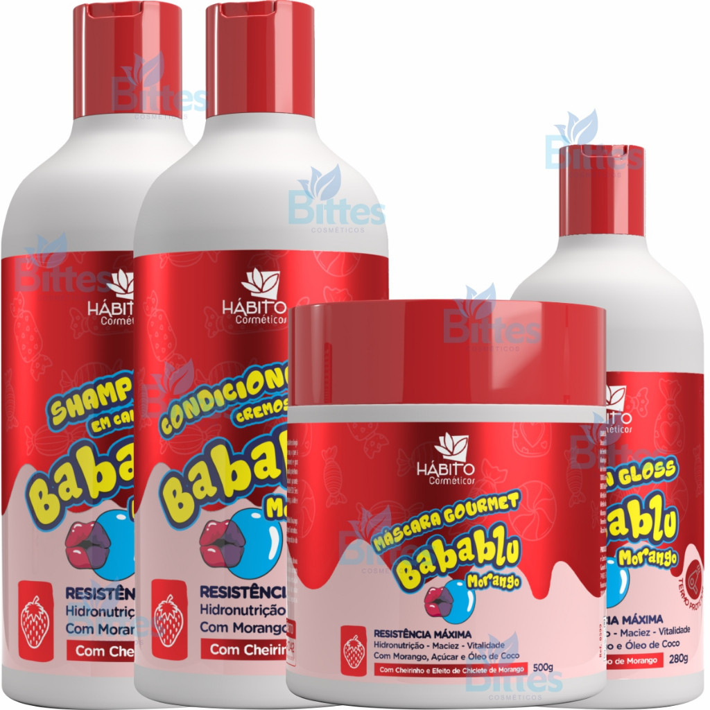 Kit Morango Hábito Cosméticos Nutrição e Maciez aos Fios