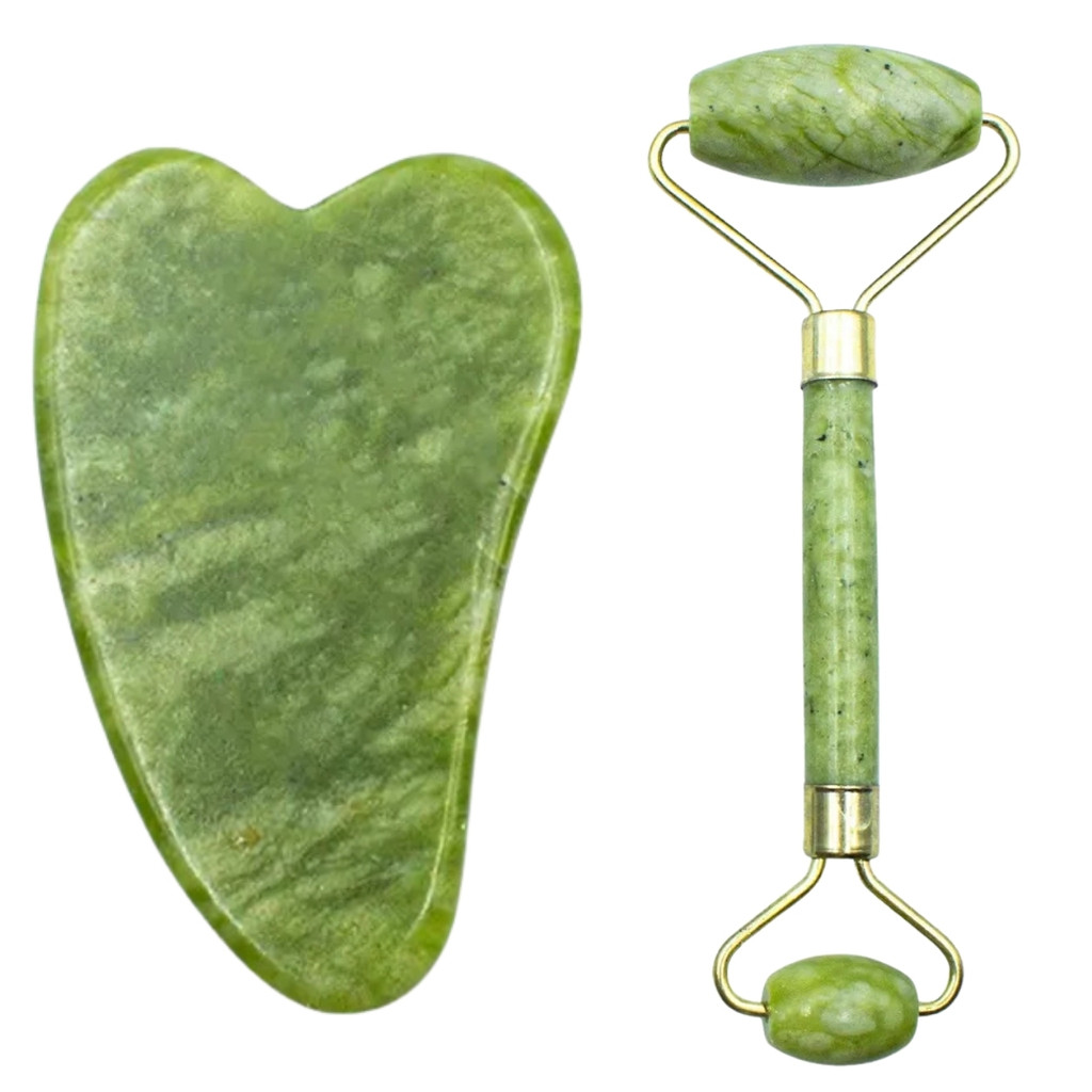 Kit Rolo Massageador Facial e Gua Sha p/ Rosto Antiestresse Drenagem Linfática Cuidado Pele Skicare Rosto Relaxante