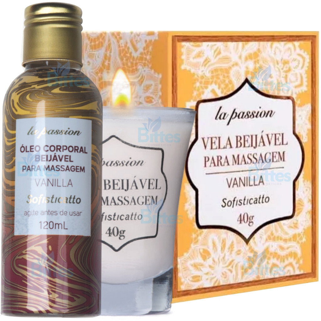 KIT SENSUAL VANILLA SOFISTICATTO COSMÉTICOS ÓLEO E VELA BEIJÁVEL PARA MASSAGEM