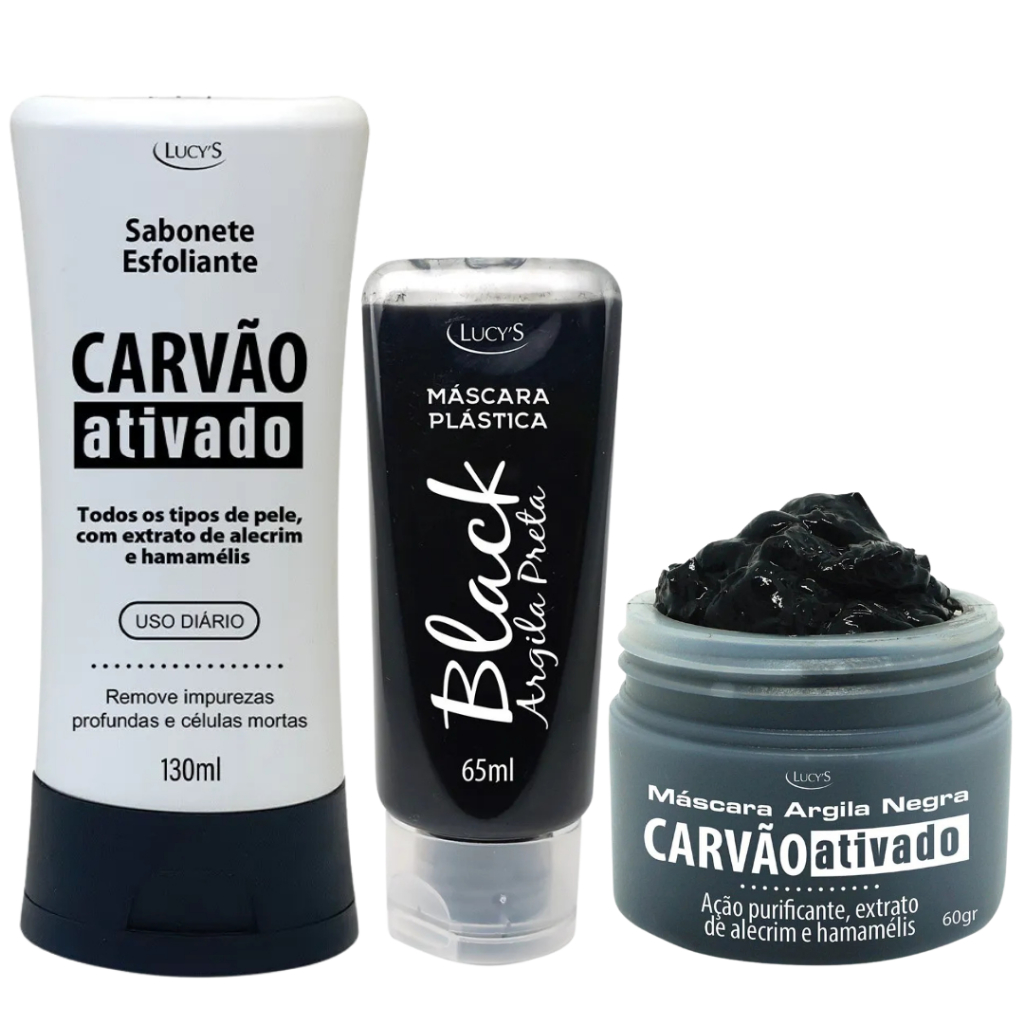 Kit Skin Care Sabonete Esfoliante, Máscara Plástica Argila e Máscara Argila Negra Carvão Ativado