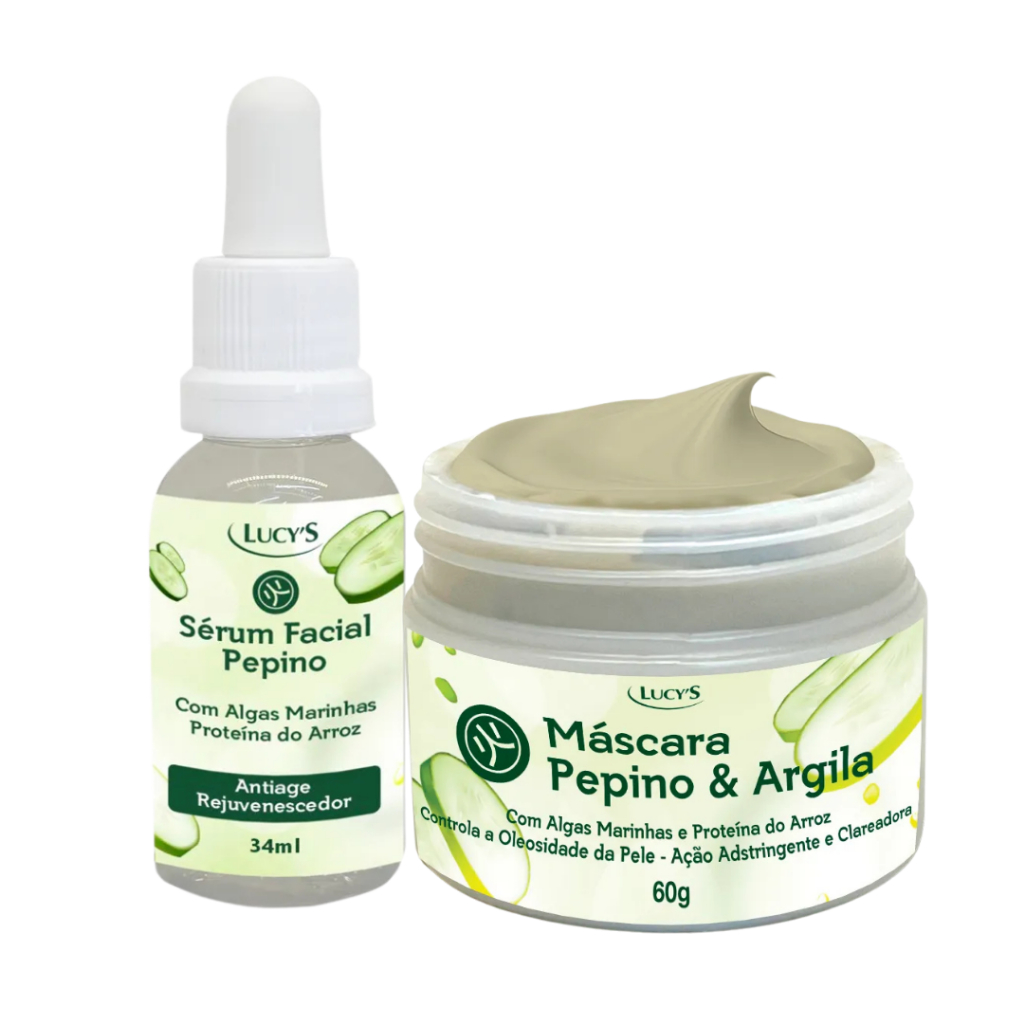 Kit Skin Care Sérum Facial e Máscara de Argila Com Algas Marinhas e Proteina de Arroz Pepino Lucy's