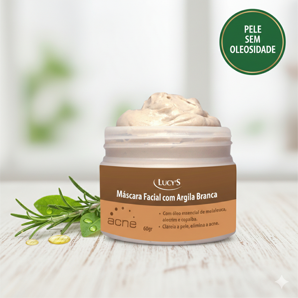 Máscara Facial Argila Branca Removedor Cravos, Acne e Clareador de Manchas Escuras 60g Lucy's