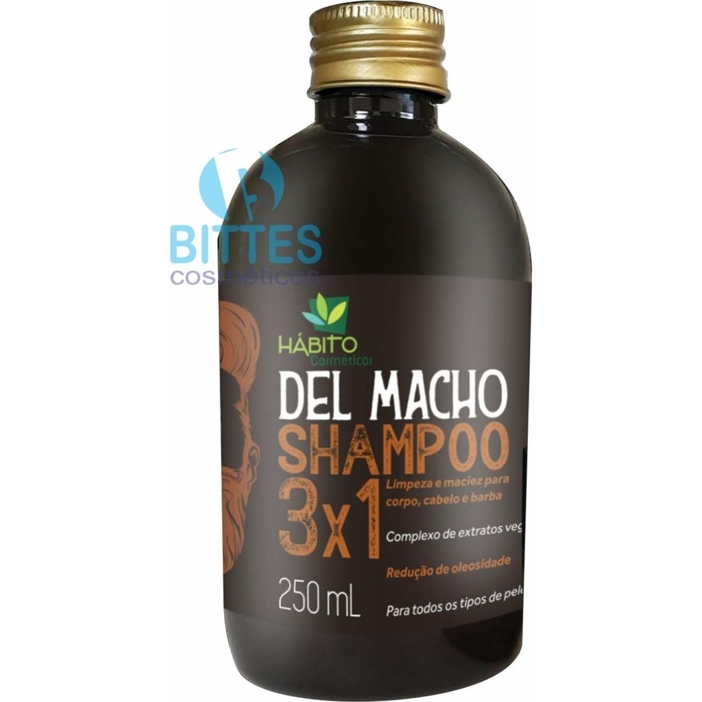 Shampoo Del Macho Hábito Cosméticos Cabelo Corpo Barba Novo